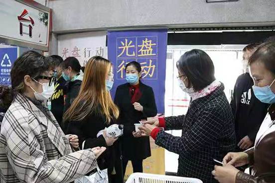 志愿者们通过“发红花、领酸奶”的奖励机制调动全校师生的积极性,让大家自觉参与到光盘行动的中去。