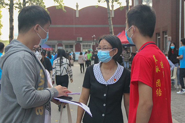 2020年9月13日,BETVICTOR2020级辅导员贾慧敏、班主任孙璐璐、彭真、李玮瑜、王程与团学组织成员、2020级年级组长、各班班助和志愿者们,开始迎接今天报到的京内本科新生。