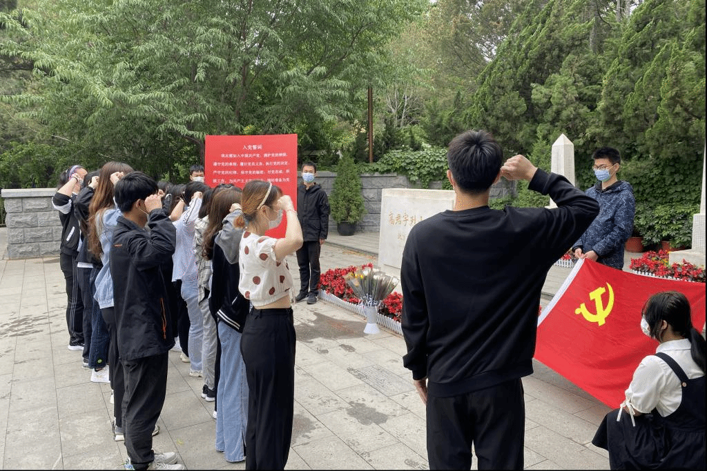 悼念仪式后,党员们面向党旗,高举右手,重温入党誓词。“我志愿加入中国共产党……随时准备为党和人民牺牲一切,永不叛党”。一句句铿锵有力、意气风发的誓词,让党员们更加铭记了青年人的使命与担当,将“永不叛党”的誓言深深印刻在每一个党员的心中!