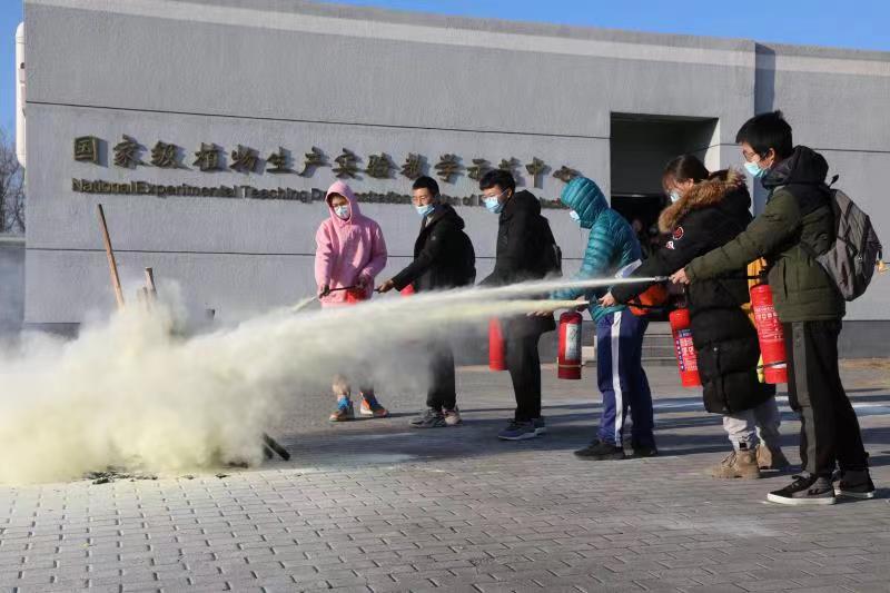 消防演习的第一项目是模拟火场逃生。首先李俊生老师讲解了有关消防演习的注意事项,包括认清逃生通道的位置、注意浓烟、注意路线等。同学们有条不紊、井然有序地撤离教学楼,并到达了安全区域。消防演习的第二项是练习使用干粉灭火器灭火。在老师的引导下,每一位同学都体验了如何快速正确使用灭火器扑灭火苗。