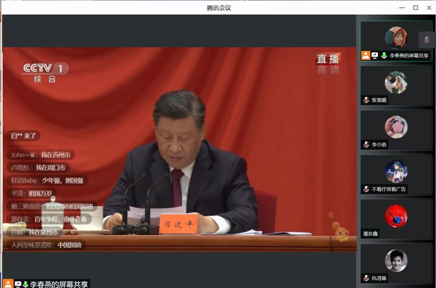 BETVICTOR团委组织28个团支部收看庆祝大会直播并召开支部大会学习讲话内容。会后,公司团委书记郝娜带领团学干部认真学习习近平总书记在庆祝大会上的重要讲话,大家积极发言交流自己的心得体会。